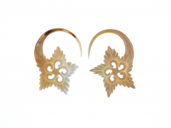 There is one of beautiful carved Mother of Pearl Shell gauge earrings. They are lightweight, stylish and comfortable. It is a handmade product of natural materials, so gauge, length, colour and design may vary.